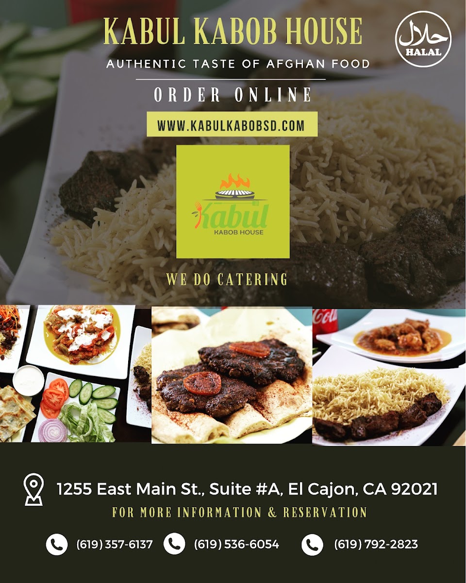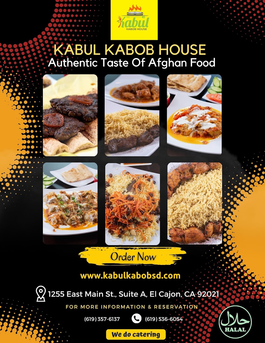 Welcome to Kabul Kabob House, nestled in El Cajon, CA, where authentic Afghan cuisine delights the palate. The menu features a rich array of choices, including tender kabobs, flavorful curries, and hearty rice dishes. Signature offerings like the Chicken Tikka and Lamb Tikka kabobs come served with aromatic rice and fresh salads, while the beloved Qabili Palaw combines raisins and carrots for a unique twist.